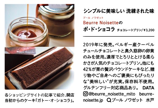 2020年12月7日発行「CREA 贈りものバイブル」に、ブール ノワゼットの ポ・ド・ショコラとガトー・オ・ショコラが掲載されました。